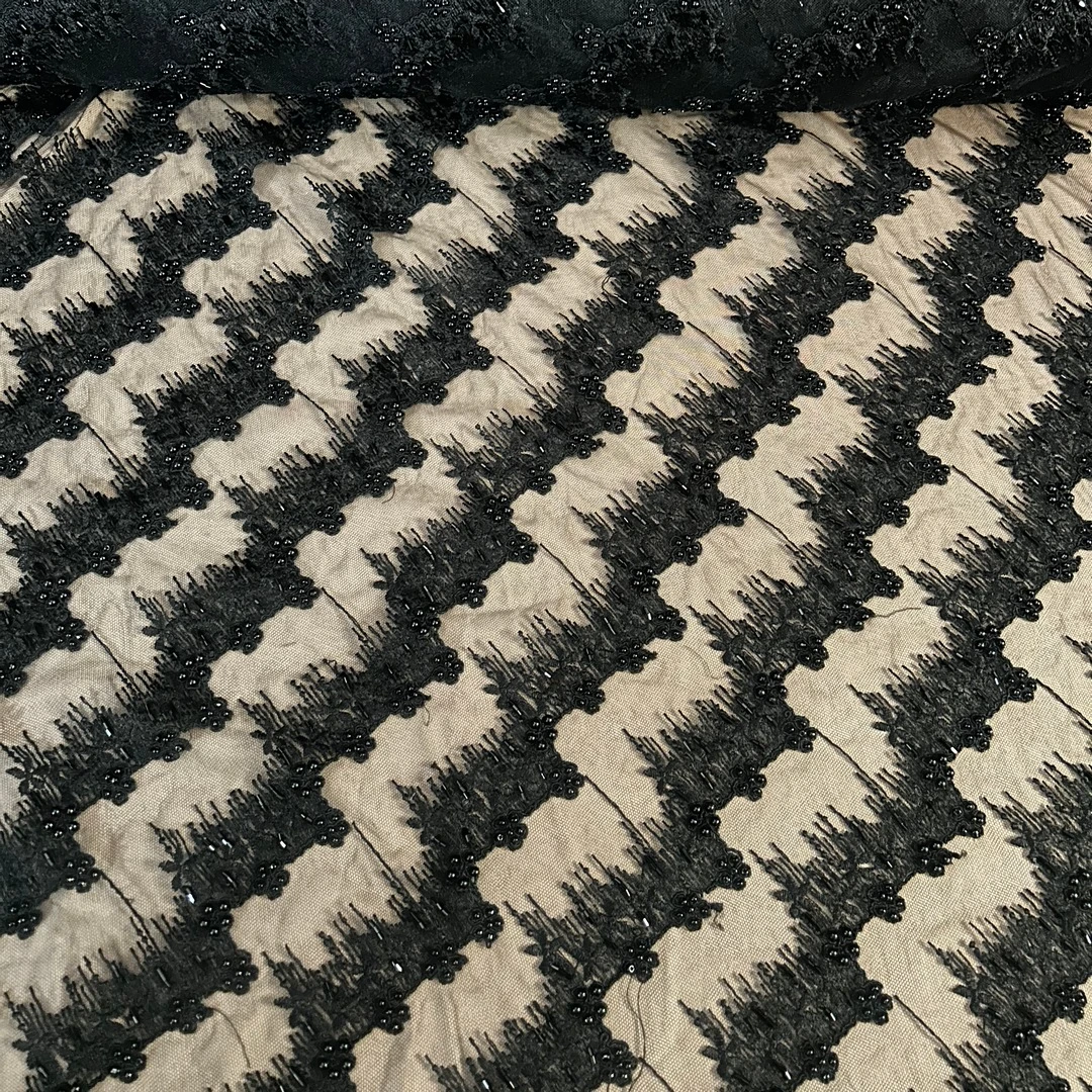 Estetski vrlo luksuzna I atraktivna tkanina, nastaje kombinacijom tila kao osnovne podloge i vezene dekoracije sa razlicitim motivima, cveca, geometrije itd. Til je dovoljno jak da nosi vez, ali ostaje prozracan i delikatan.Rastegljiva a po ivicama ima izvezen zavrsni rad.
